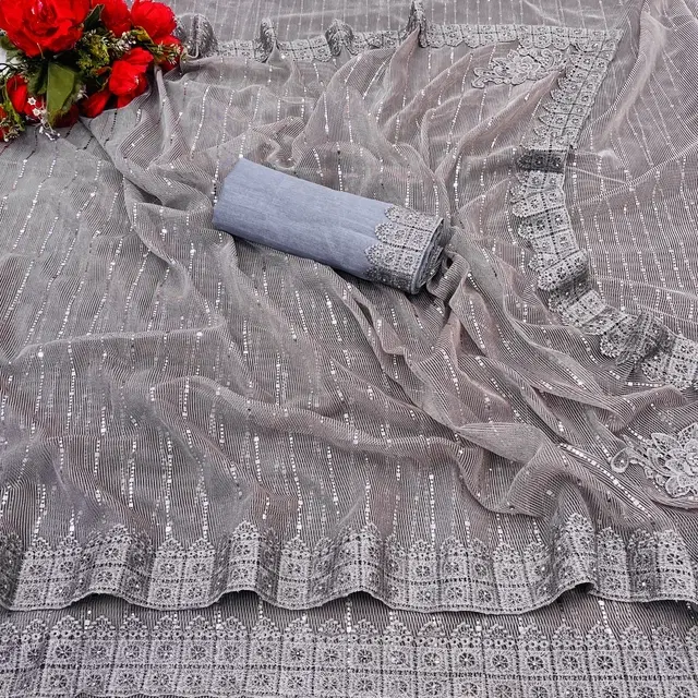 Lycra Blend Embellished Saree for Women (Grey, 6.3 m) - Buy Online at CityMall