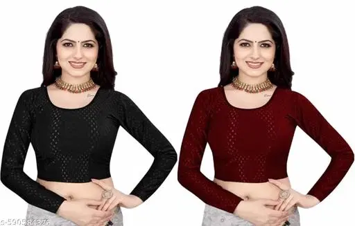 Lycra Ready Made Blouse for Women, Maroon & Black, Pack of 2 (40) @ ₹293 - Buy Online at CityMall