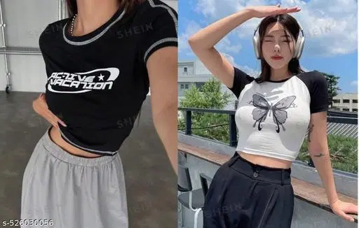 Name: Women's Crop top Cat & Slogan Graphic Crop Tee