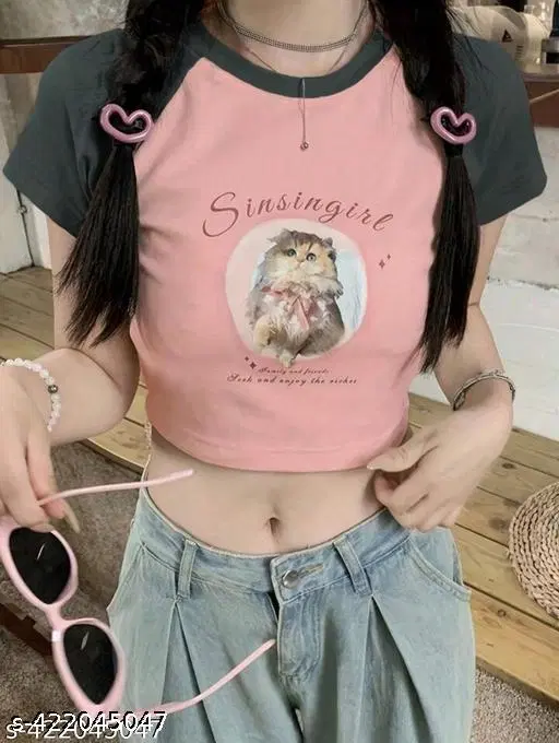 Name: Womens Crop top Summer Cat Printed Top