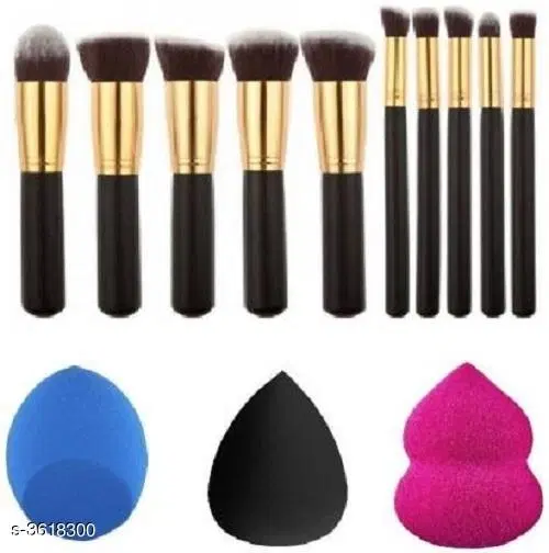 Description: It Has 10 Pieces Of Makeup Brushes & 3 Piece Of Blender Sponge