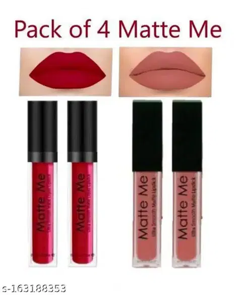Net Quantity (N): 4 Combo of Matte Me Long Lasting | Waterproof | Liquid Matte Lip Color (upto 12 hours Stay) (Nude Colour) (Red Colour) (Pack Of 4) Country of Origin: India