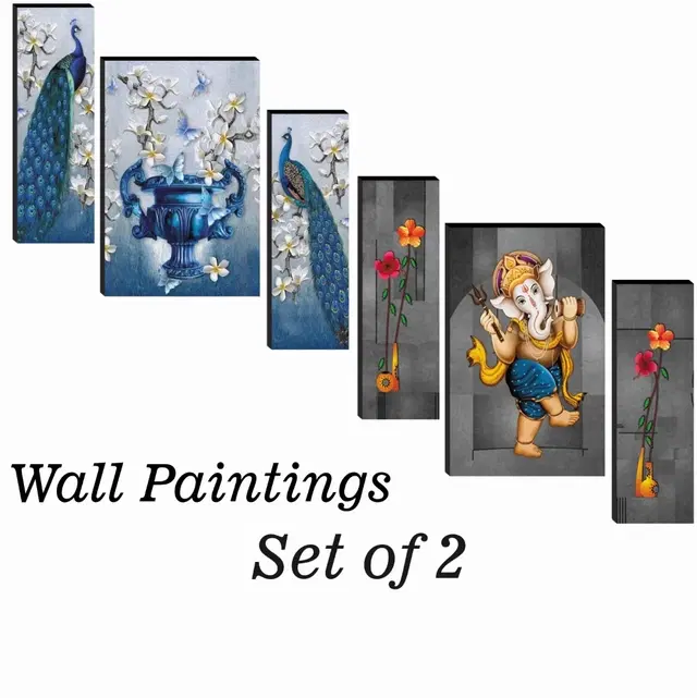 MDF 2 Pcs Designer Wall Painting for Home & Office, Multicolor, 12x18 Inches, Set of 1