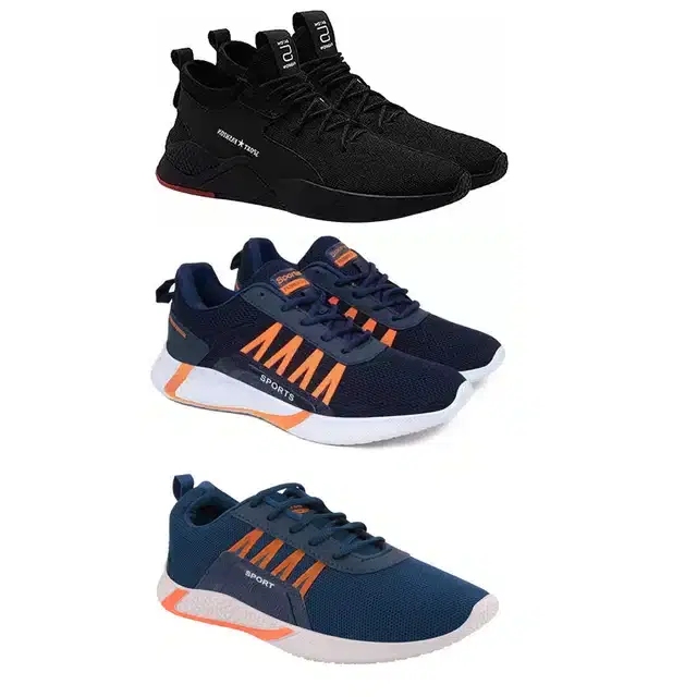 Men's Lace Up Lightweight Sports Shoes, Combo of 3 (Multicolor, 10)