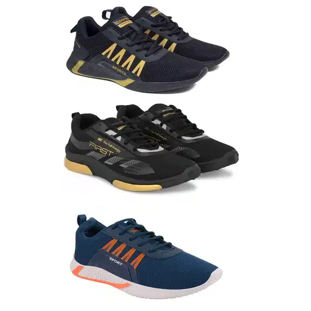 Men's Lace Up Lightweight Sports Shoes, Combo of 3 (Multicolor, 7)