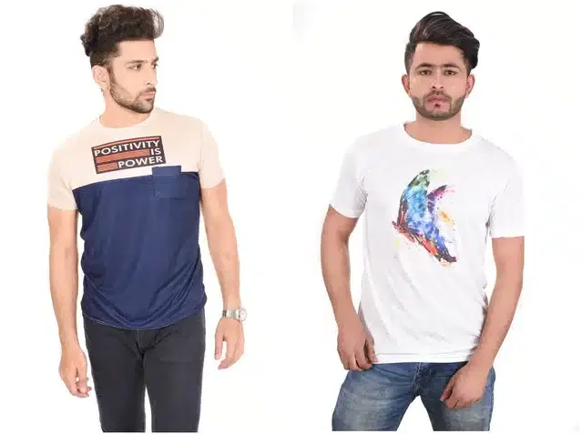 Men's Round Neck Printed T-shirt, Pack of 2 (Multicolor, M) - Buy Online at CityMall