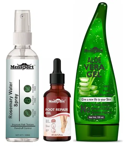 Mensport Rosemary Hair Spray, 100 ml with Foot Repair Oil, 30 ml & Natural Aloe Vera Gel, 130 ml, Set of 3 - Buy Online at CityMall