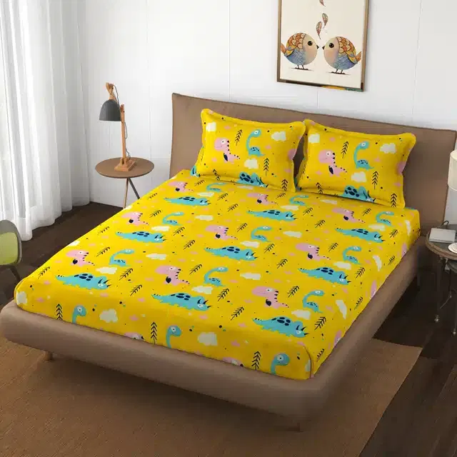 Microfiber Double Bedsheet with 2 Pillow Covers, Yellow, 90x90 Inches - Buy Online at CityMall