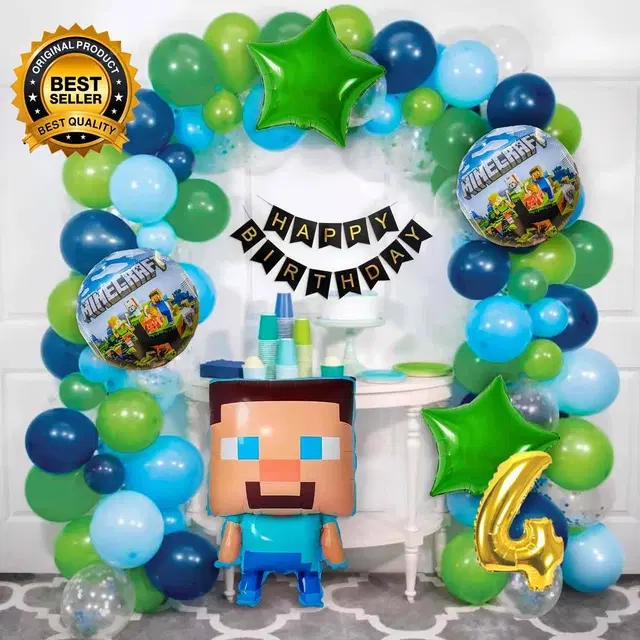 Mine Craft Theme 4th Birthday Balloon Decoration Kit For Kids, Multicolor, Pack Of 72 - Buy Online at CityMall