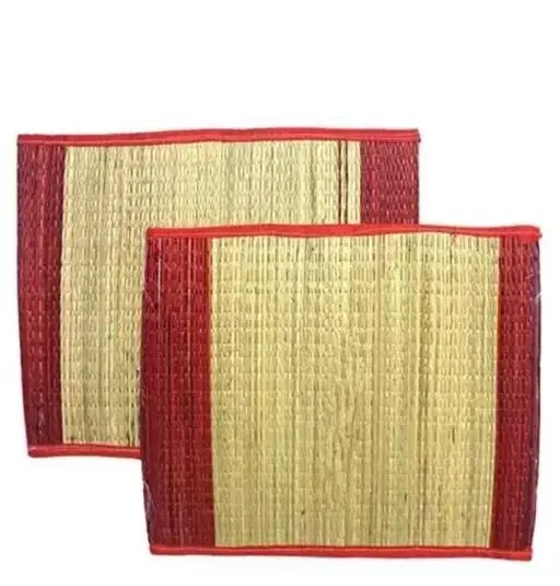 Natural Natural Grass Pooja Mats, Red & Brown, Pack of 2, Multicolor, Pack of 2