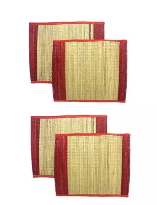 Natural Natural Grass Pooja Mats, Red & Brown, Pack of 4, Multicolor, Pack of 4