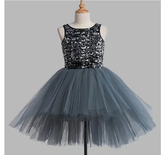 Net Solid Frock for Girls (Black & Grey, 1-2 Years) - Buy Online at CityMall