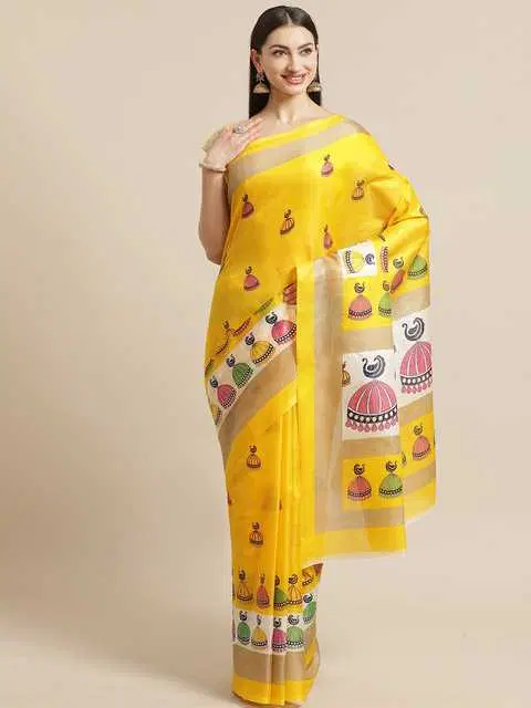 Yellow Printed Saree