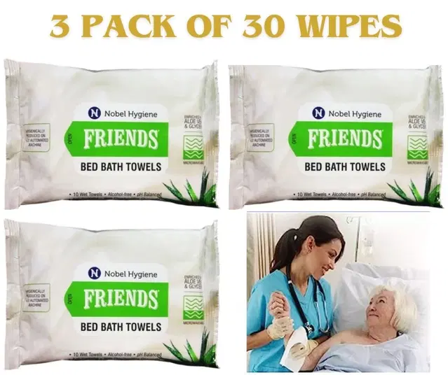 Nobel Hygiene Friends 10 Pcs Bed Bath Towels Wipes, Pack of 3