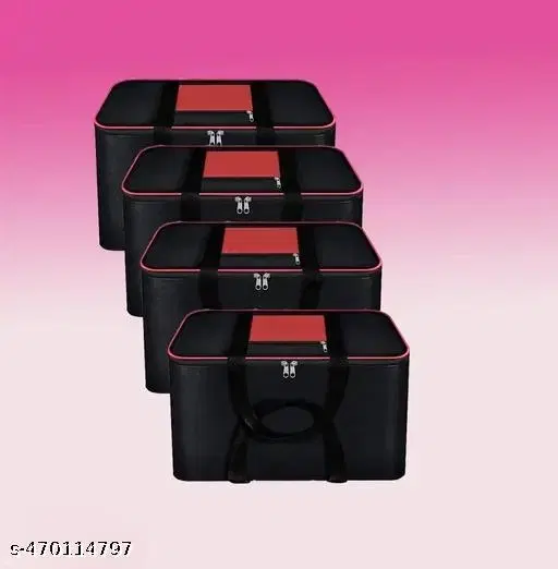 Name: Underbed Storage Bag Moisture Proof Cloth Organiser Nylon Big Underbed Storage Bag with Zippered Closure and Handle(Black Red, 54x46x28cm) pack of 4
