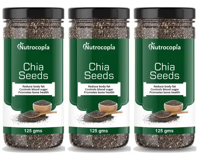 Nutrocopia Pure Black Raw Chia Seeds, Pack of 3, 125 g