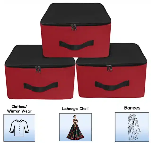 Nylon Underbed Storage Bag for Clothes with Handle, Red & Black, Pack of 3 - Buy Online at CityMall