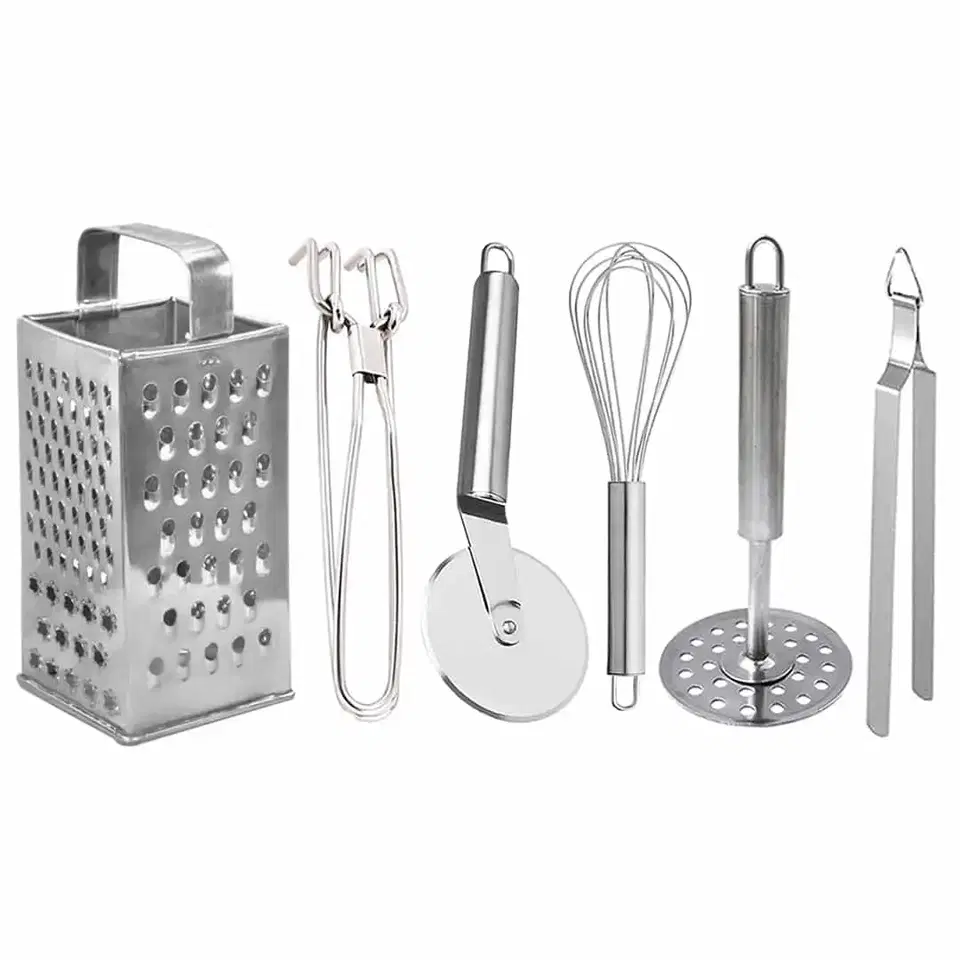 Oc9 Stainless Steel 4 In 1 Slicer And Grater & Utility Pakkad & Pizza Cutter & Roti Chimta & Potato Masher For Kitchen Tool Set, Oc-320 @ ₹329 - Buy Online at CityMall