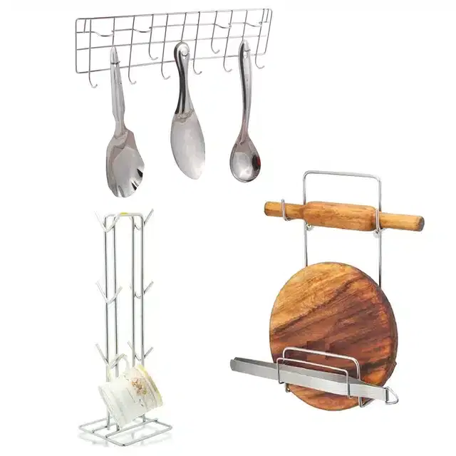 Oc9 Stainless Steel Chakla Belan Stand & Cup Stand & Wall Mounted Ladle Hook Rail For Kitchen - Buy Online at CityMall