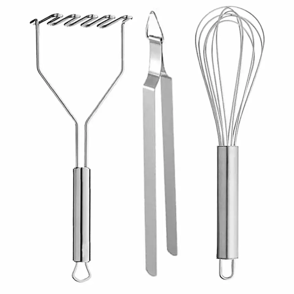 Oc9 Stainless Steel Potato Masher & Egg Whisk & Roti Chimta For Kitchen Tool Set, Oc-205 - Buy Online at CityMall