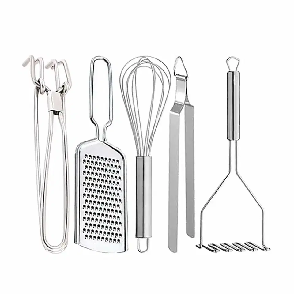 Oc9 Stainless Steel Utility Pakkad & Cheese Grater & Egg Whisk & Roti Chimta & Potato Masher For Kitchen Tool Set, Oc-424 - Buy Online at CityMall