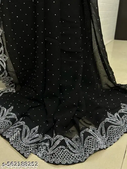Name: Georgette Siroski Hotfix Saree | Sarees for Women | Party wear Sarees