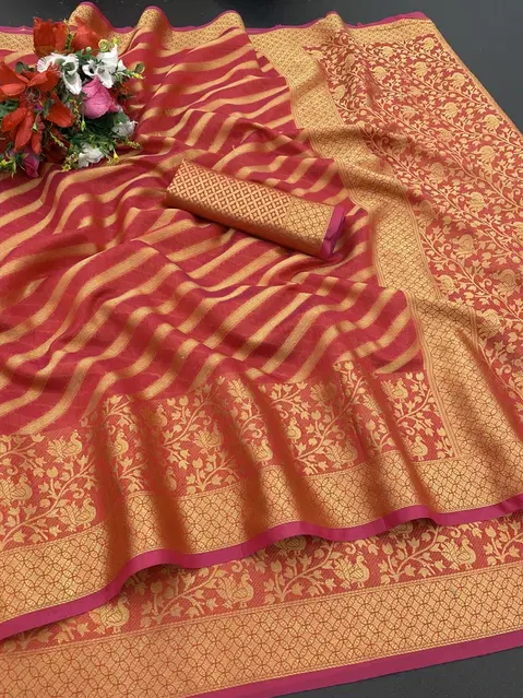 Organza Printed Saree for Women (Red, 6.3 m) - Buy Online at CityMall