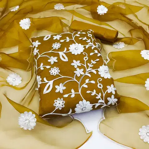 Organza Unstitched Dress Material for Women (Yellow) - Buy Online at CityMall