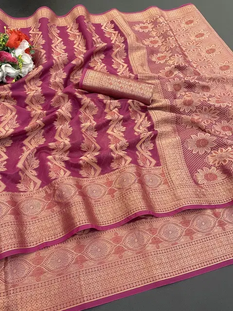Organza Zari Woven Saree for Women (Wine, 6.3 m) - Buy Online at CityMall