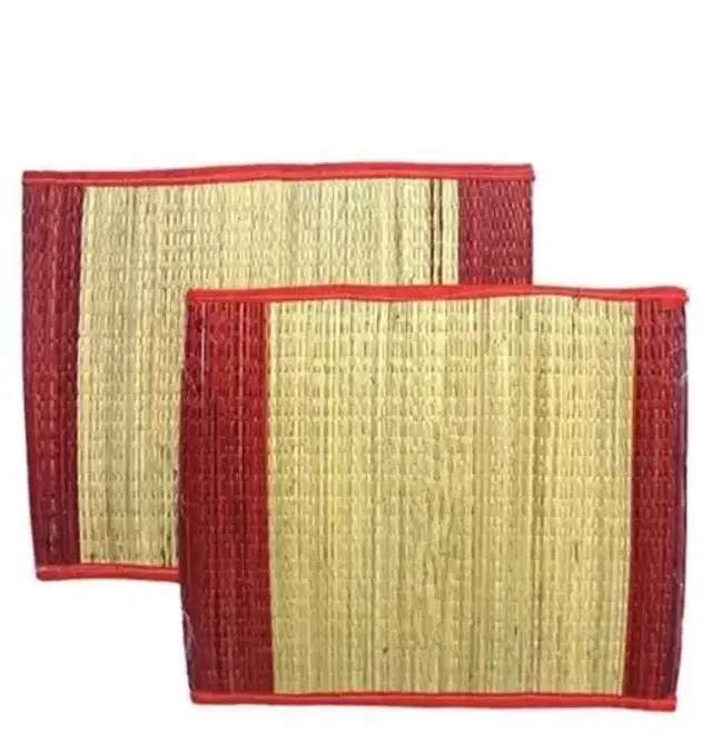 Original Natural Grass Pooja Mats, Brown & Red, Pack of 2