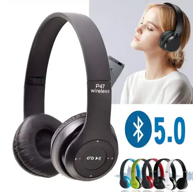 P47 Foldable Wireless Bluetooth Headphone with Mic & SD Card Support, Assorted