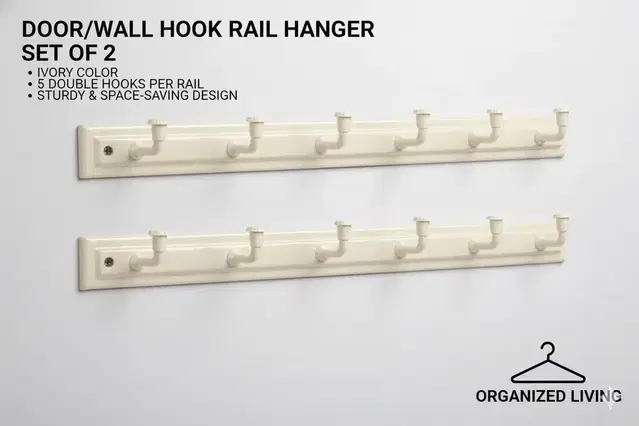 Add functionality and elegance to your home or office with the Padmakshi Hook Rail Hanger Set. Made from durable metal with a smooth ivory finish, each rail features 6 sturdy hooks for hanging clothes, bags, keys, and other essentials. Easy to mount on doors or walls, this space-saving hook rail is both practical and stylish.