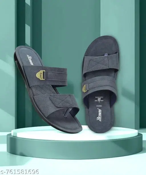 Name: Men's Greyish Blue PU Slippers | Premium Double-Strap Comfortable Daily Wear |PU Leather Men's Sliders | Stylish Greyish Blue Slip-On Comfort Sandals |Stylish Double-Strap PU Slippers for Men | Soft Footbed Casual Wear