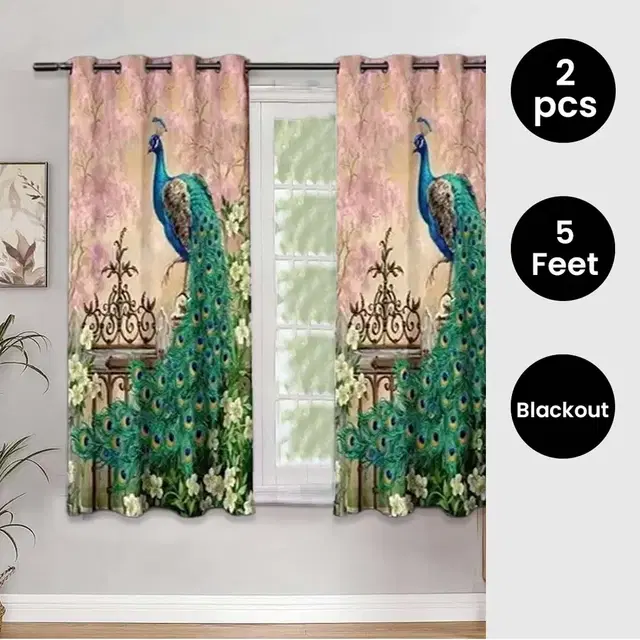 Peacock Designed Digital Printed Window Curtain 5ft Combo (Pack of 2) - Buy Online at CityMall