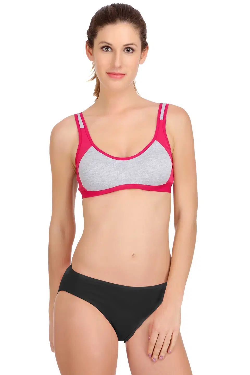 Material : Cotton Blend Sales Package : 1 Bra Panty Set Pattern : Solid Cup Type : Non Padded Cups Cup Size : B Fabric Care : Machine wash at 40 Degree,Only Non-Clorine ,Bleach when Needed,Low tumble Dry settings Do not Iron,Do not Dry clean Low Rise : Low Rise Bra Coverage : Full Coverage Bra Type : Minimizer