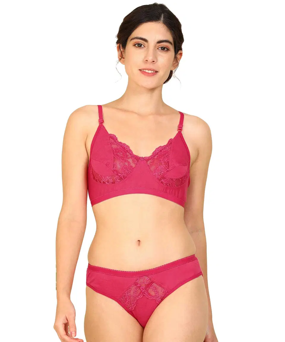 Pibu Women Cotton Bra Panty Set, Pack of 1 (Pink, 36) (P-431) - Buy Online at CityMall