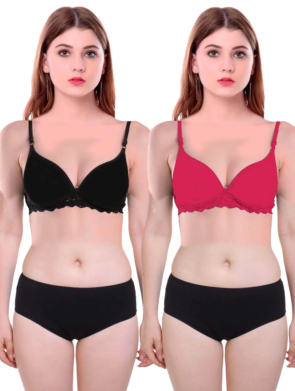 Pibu Women Cotton Bra Panty Set, Pack of 2 (Black & Pink, 38) (P-331) - Buy Online at CityMall