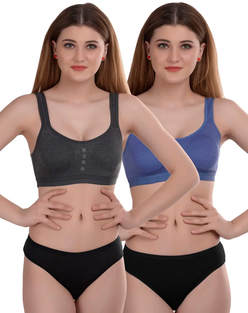 Pibu Women Cotton Bra Panty Set, Pack of 2 (Grey & Blue, 40) (P-202) - Buy Online at CityMall