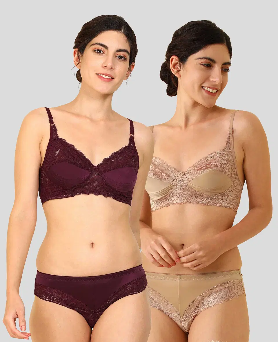 Pibu Women Cotton Bra Panty Set, Pack of 2 (Maroon & Brown, 32) (P-512) - Buy Online at CityMall