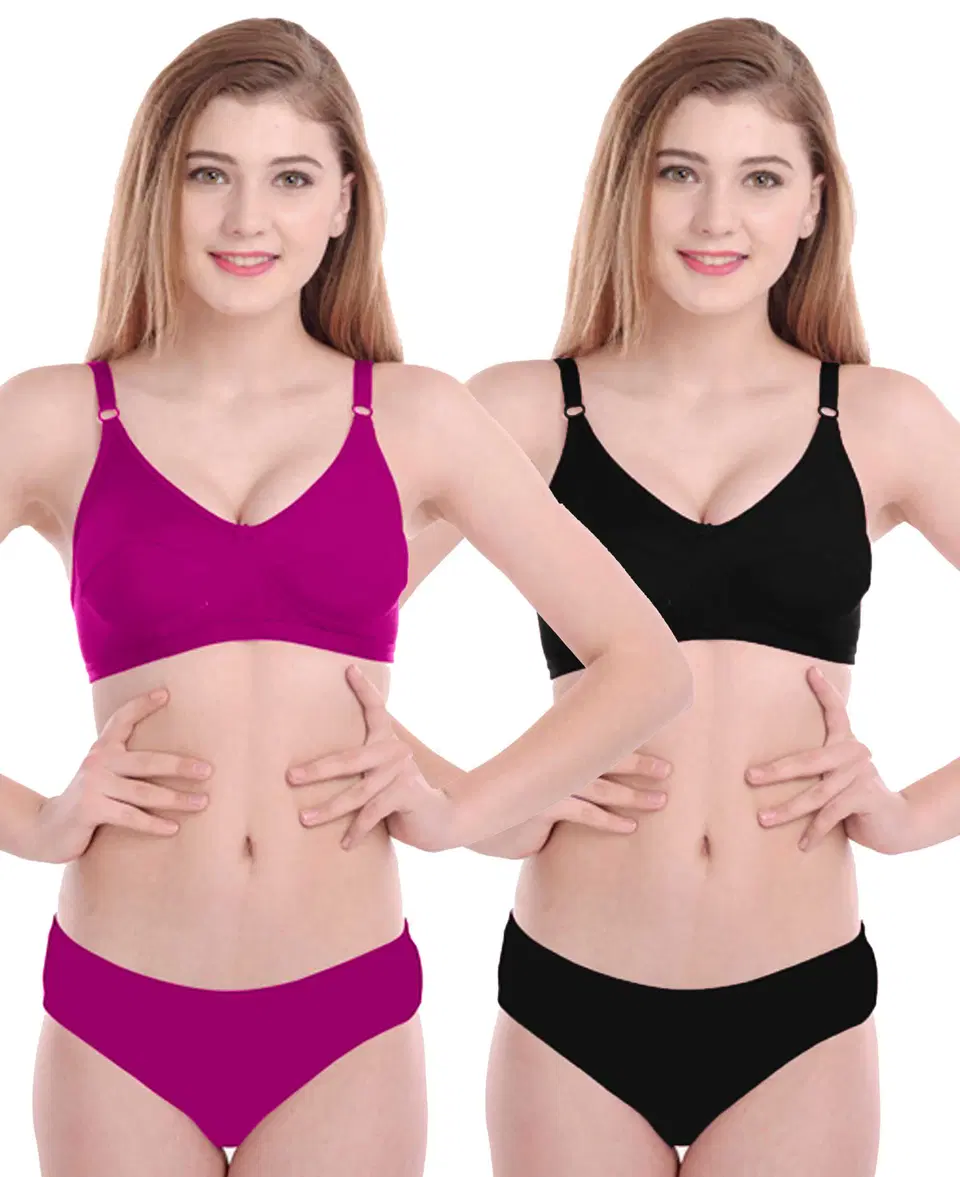 Pibu Women Cotton Bra Panty Set, Pack Of 2 (Pink & Black, 34) (P-243) - Buy Online at CityMall