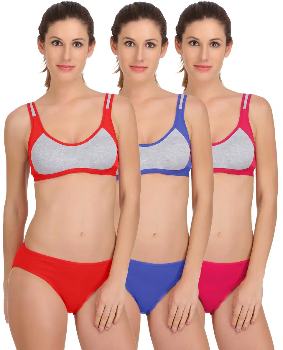 Pibu Women Cotton Bra Panty Set, Pack of 3 (Multicolor, 32) (P-269) - Buy Online at CityMall