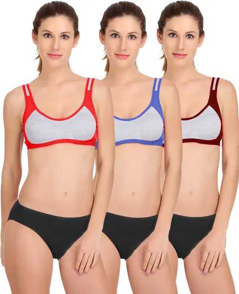 Pibu Women Cotton Bra Panty Set, Pack of 3 (Multicolor, 32) (P-282) - Buy Online at CityMall