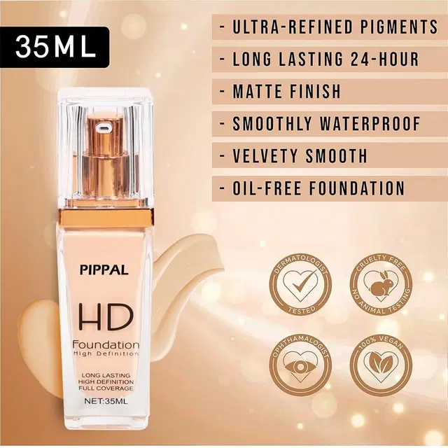Pippal HD Foundation High Definition Long Lasting Full Coverage 35ml Pack of 1
