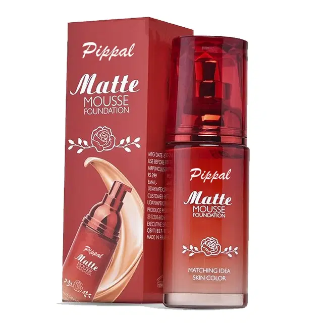 Pippal Matte Mousse Foundation Cream Man And Woman 60ml Pippal Matte Mousse foundation is a smart hydrating foundation with medium to full coverage and a matte finish, It is a lightweight foundation menat for you everday use, It also blends effortlessly onto your skin hiding imperfections throughtout the day