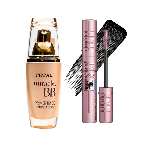 Pippal Mirecle B.B. Primer Base Foundation Skin with Flawless Beauty 60ml (Pack of 1) With Sky High Volume Up Mascara