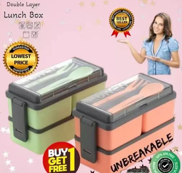 Plastic 3-in-1 Compartment Lunch Box with Spoon & Fork, Multicolor, 1500 ml, Set of 2 - Buy Online at CityMall