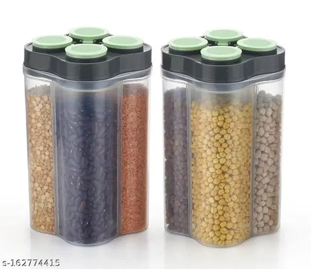 Plastic 4 in 1 Food Storage Container (Black & Green, 2500 ml) (Pack of 2)