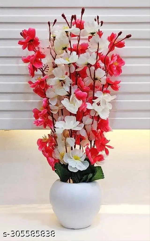 Artificial Flowers for Decoration with Pot, Home Decor, Office Decor, Cherry Blossom Combo, Maroon - White 1Piece