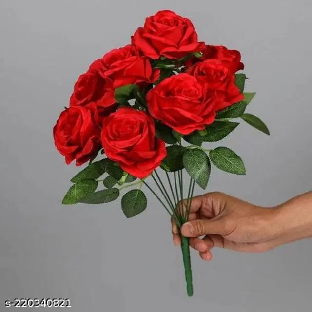 Real PBR 9 Heads Rose Big Bouquet Holding Artificial Silk Flower DIY Wedding Party Floral Bunch Home Living Room Table Decor Fake Flowers