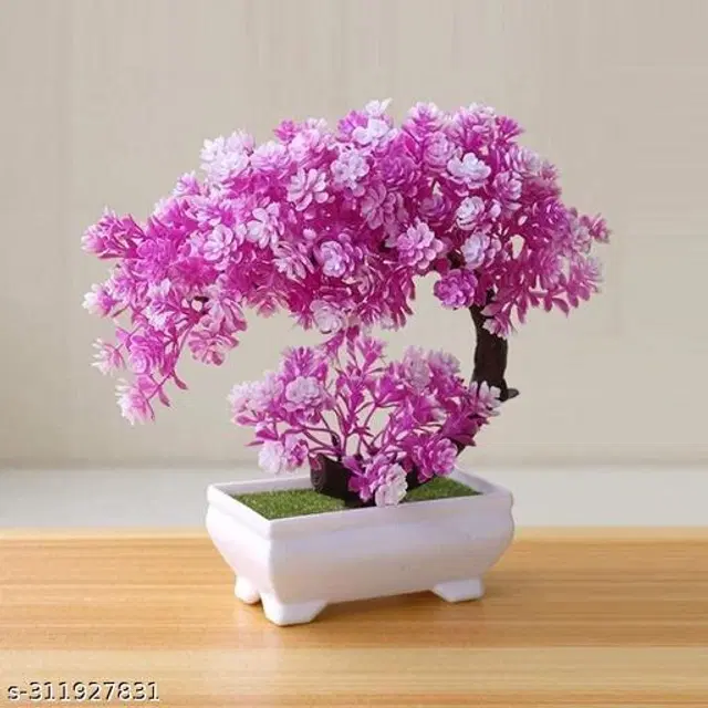 Artificial Bonsai Tree Fake Plants Desk Decor for Home Office Wall Book Shelf Decor with Pot (purple)